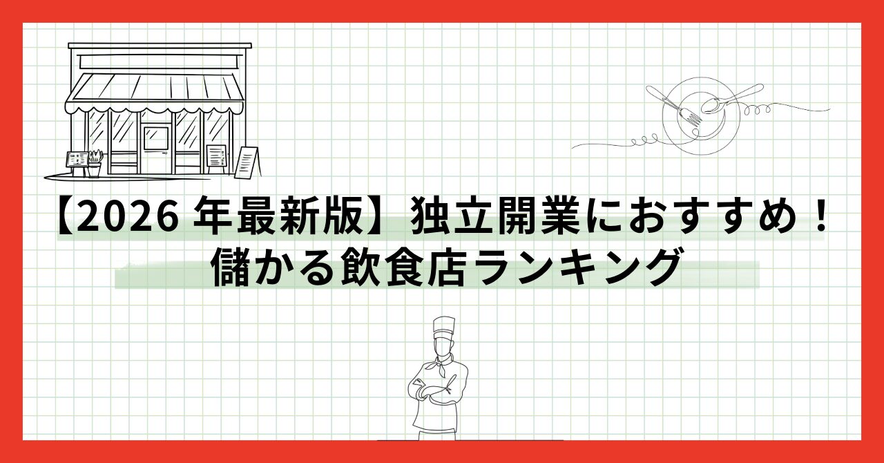 【2026年最新版】独立開業におすすめ!儲かる飲食店ランキング